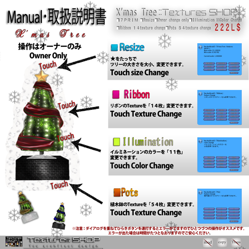 「7プリム」「リサイズ」「オーナーオンリー」「イルミネーションのカラーチェンジ(9色)」